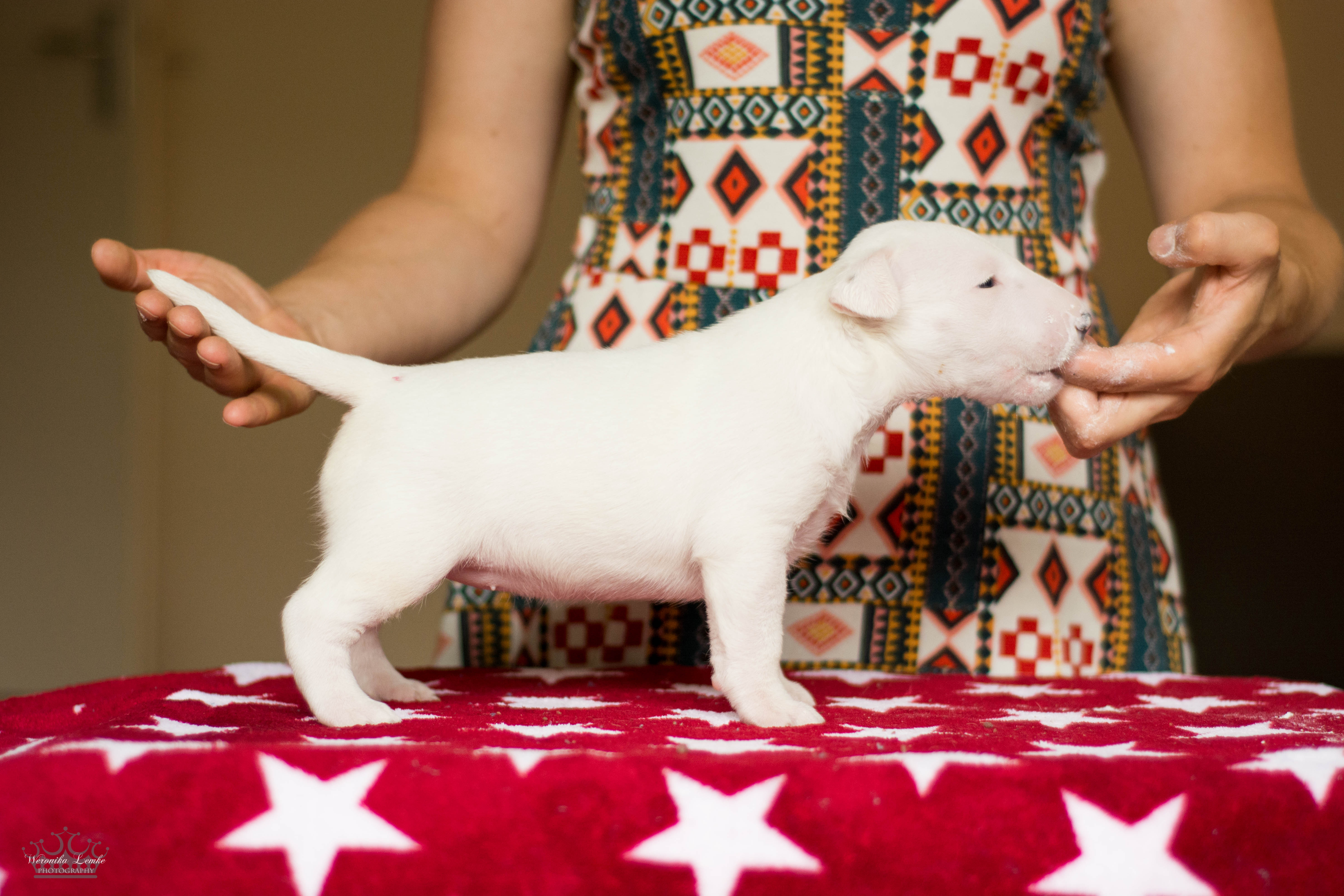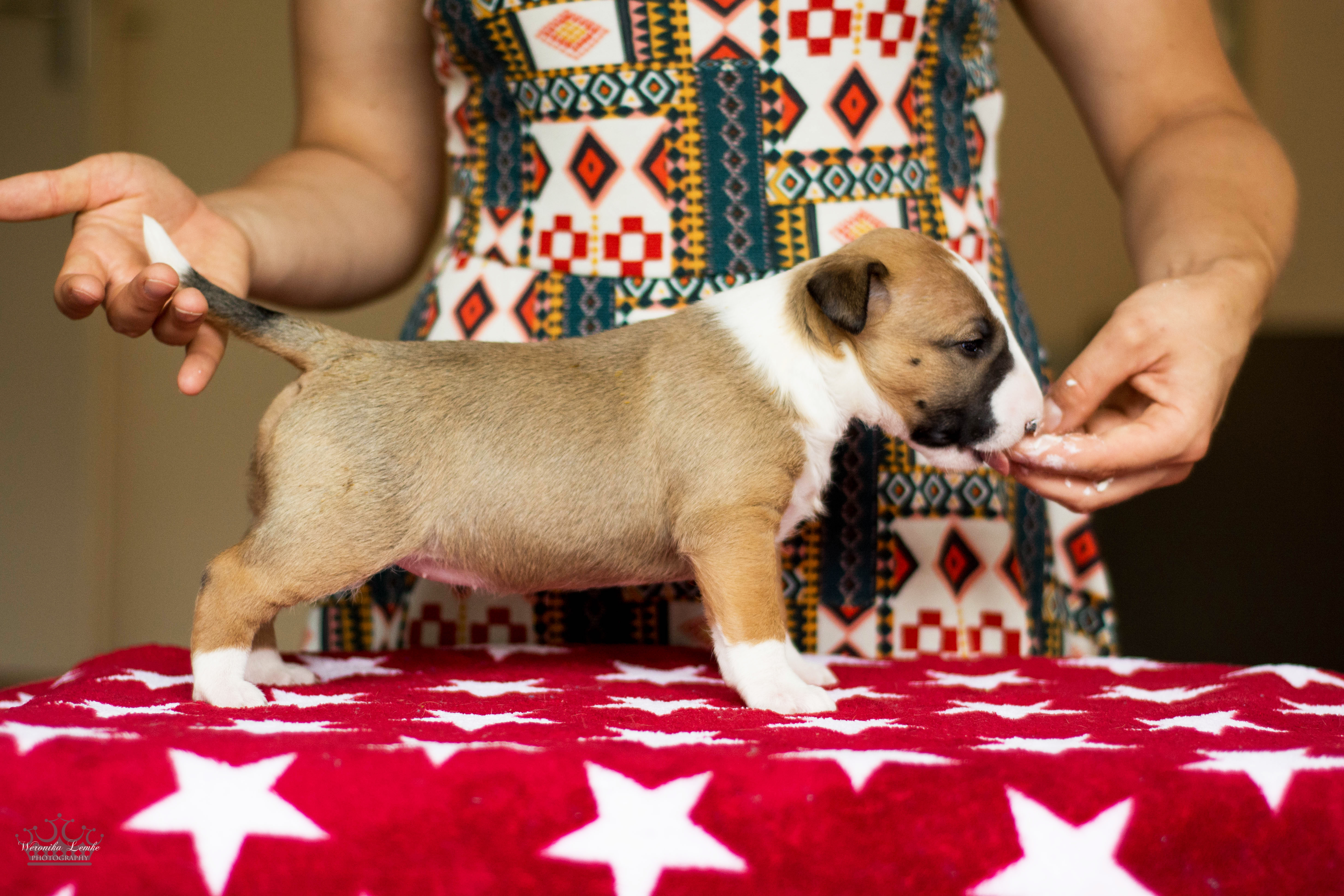 Pups 4 weken! Posted by begentlewithlove Tri color girl Red girl White girl Brindle girl White girl Red girl White boy Related